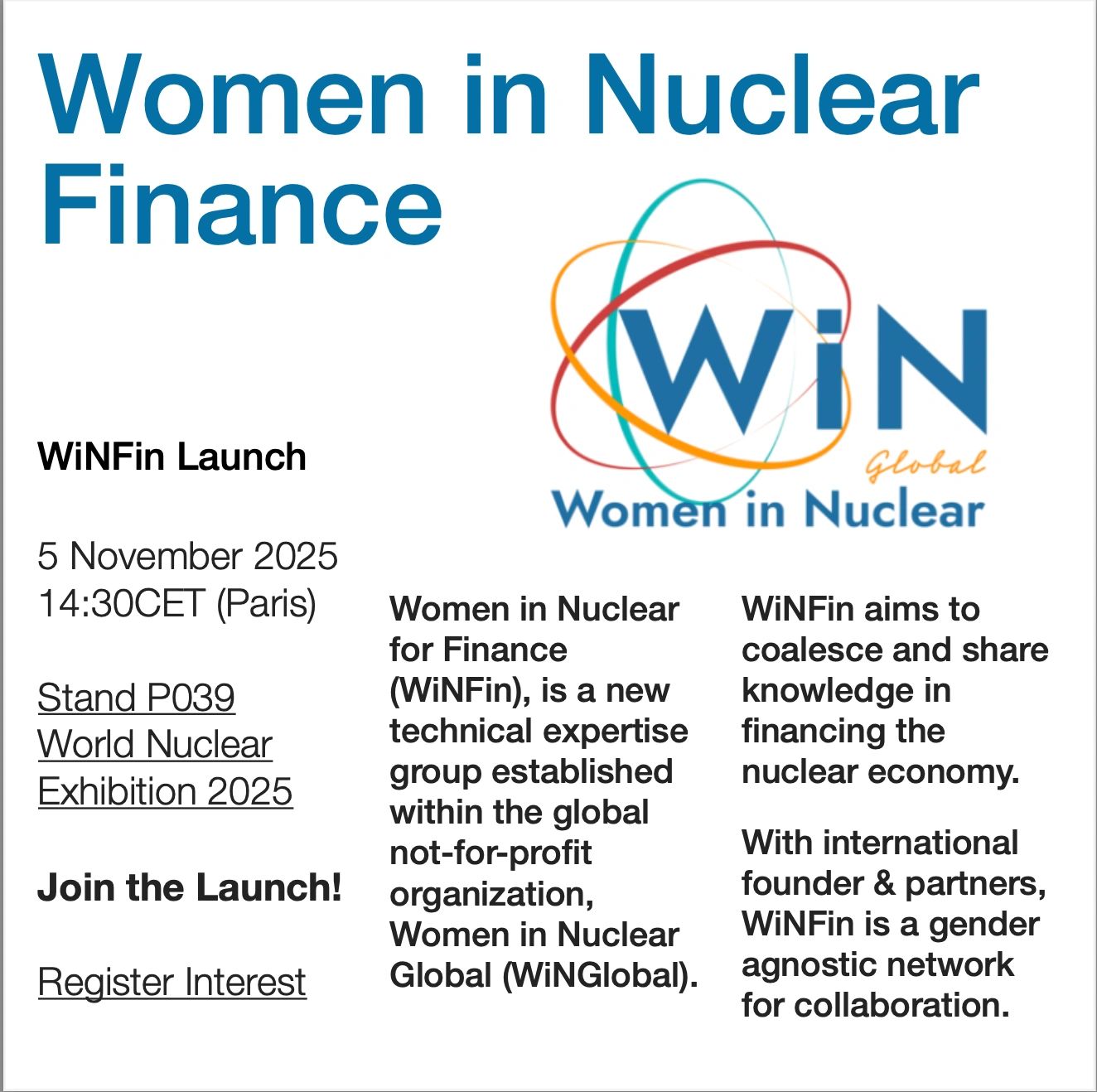 November 5, Paris, 14:30CET. Join the WiNFin launch at the World Nuclear Exhibition 2025! Network, Learn & Share!